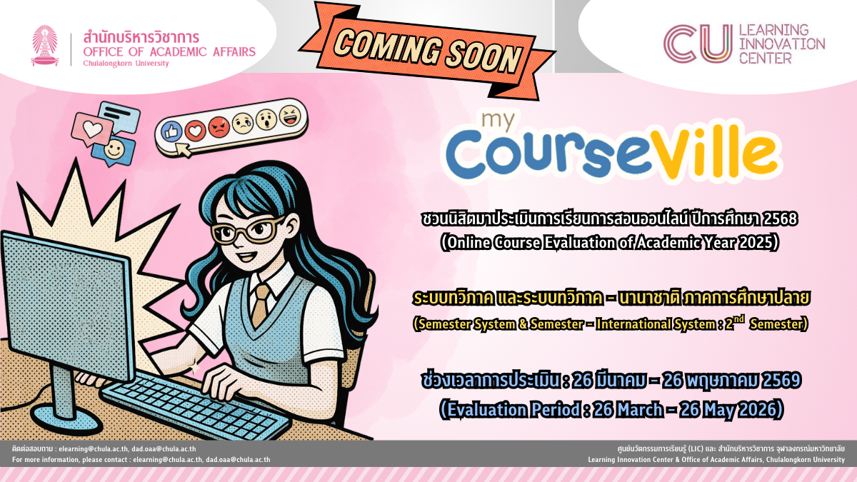 การประเมินการเรียนการสอนออนไลน์ผ่านระบบ myCourseVille สำหรับนิสิตในระบบทวิภาค และระบบทวิภาค - นานาชาติ ภาคการศึกษาปลาย ปีการศึกษา 2568